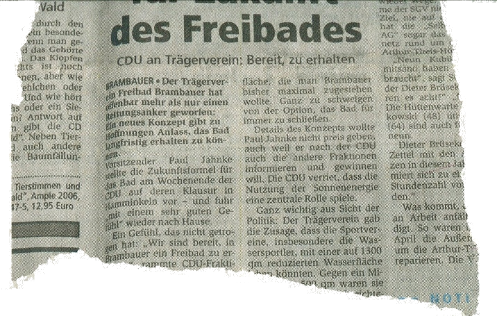 Um das Bad zu erhalten, schlossen die Bädergesellschaft und der Trägerverein 2007 mit Zustimmung des Rates eine Vereinbarung, wo nach der Trägerverein das Freibad langfristig bewirtschaftet. Das kam nicht von ungefähr, wie ein Blick in unser Archiv zeigt.